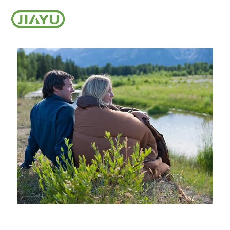 Vuxen 4-i-1 utomhus sovväska, du kan zippa ihop två väska (vänster och höger) för att vara en dubbel sovväska, denna sömnväska kan också helt och hållet vara en matta..zhejiang jiayu utomhusprodukter Co., Ltd-tvätt i kallt vatten med milt tvättmedel, på den mjuka cykeln.