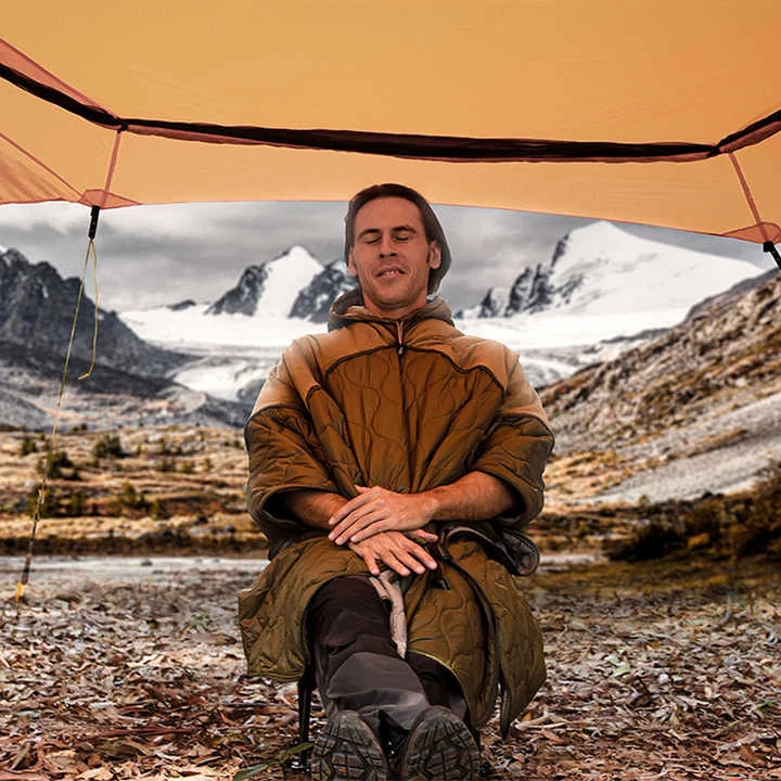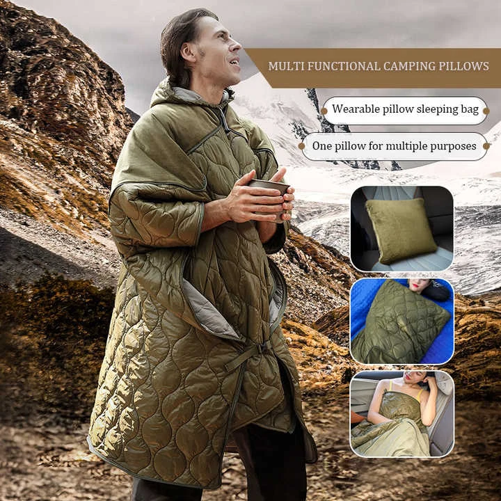 Vuxen 4-i-1 utomhus sovväska, fiberlockkonstruktion med bomullsskydd och mjuk bomullsflanellfoder för maximal värme och komfort.