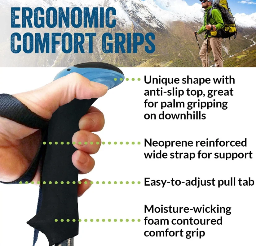 Dubbelhandtag vikande vandringsstång.Nordisk promenader är en tidseffektiv, låg stress, total kroppsövning som är fantastisk för viktminskning, samt att hålla dig i form, tonad och hjälpa dig att se bättre ut, tre gånger en vecka, kan hjälpa lägre blodtryck, minska din cholester, och gå tillbaka, och ta tillbaka, axel och axel och axel.