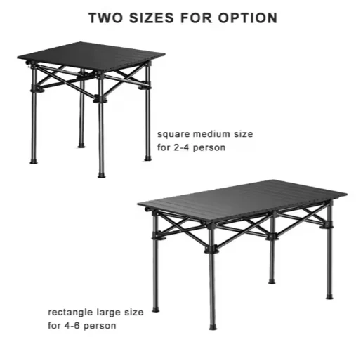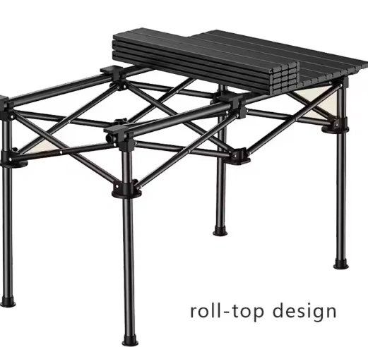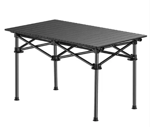 Foldbar metallcampingbord. Det bärbara vikbara picknickbordet kan rullas upp och stålramen med säkert lås kan vikas, så det är enkelt och säkert att installera eller vika när som helst för att hjälpa dig att spara mycket tid.zhejiang Jiayu utomhusprodukter co ., Ltd., vi denna fällbara bordcamping är gjord av tjockare aluminiumlegering och anodiserad behandling, som är rostfri, korrosionsbeständig , lätt att rengöra. använda.