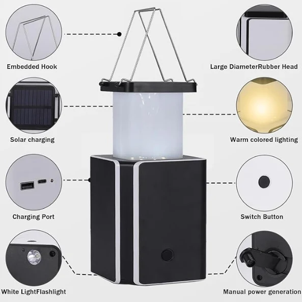 LED Solar Camping Light, Emergency Camping Lantern Lights Hand-Crank Power Generation. Om du inte har en laddare runt och det finns ingen sol, är denna hand-cranked generator perfekt för att ladda ljus.