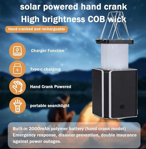 IPX4, Emergency Lights Hand-crank kraftproduktion, mobil kraftfunktion till mobiltelefonens strömförsörjning ,, nödljus, ficklampor, SOS-varningsljus., Solar LED-laddningsbara nödcampinglykta, soluppladdningsbar, laddningsbar typ C,