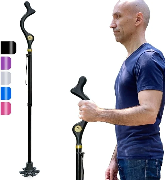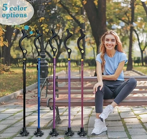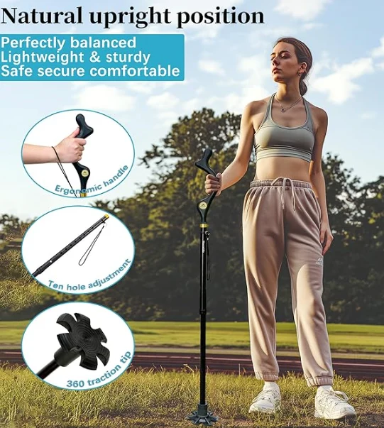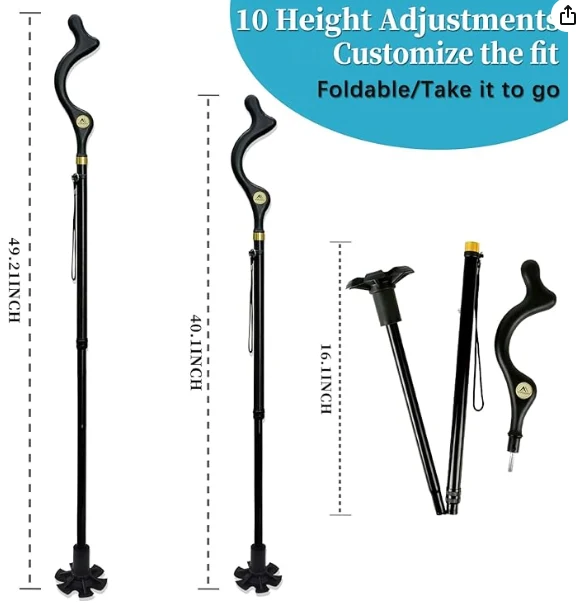 Utomhusklättringsutrustning Vandringsstång, vandringsrör vikbar för män och kvinnor Seniorer för balans, självstående vikbara sockerrör, höjdjusterbar antislipning Lätt legering Walking Stick Collapsable for Travel Mobility Aid