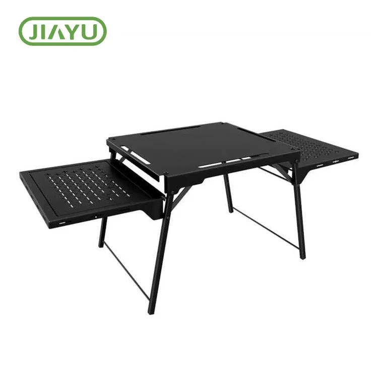Bärbar vikning av aluminium-järn campingbord. Mycket lätt att rengöra och skala inte lätt. Oljan och fettet fäst vid bordsskivan kan tas bort mycket enkelt .zhejiang Jiayu Outdoor Products Co., Ltd., det finns ett bekvämt förvaringsfack under skrivbordet för att lagra föremål som bordsartiklar, dryck. För att förhindra att föremål blir våta är förvaringsfacket utformat med en nätstil.