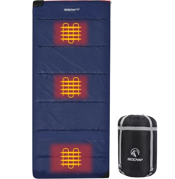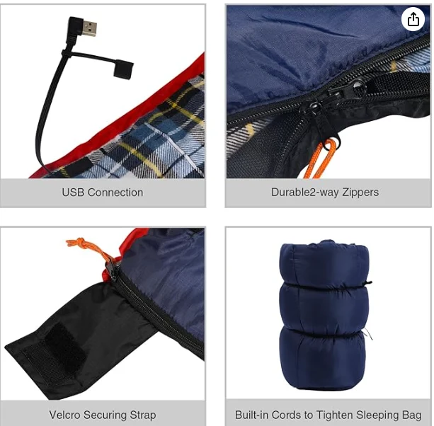 Bärbar uppvärmd vattentät sovsäck, genom att trycka på en knapp, gör det det enkelt för dig att justera temperaturen efter dina behov, vilket ger värme och komfort hela natten.