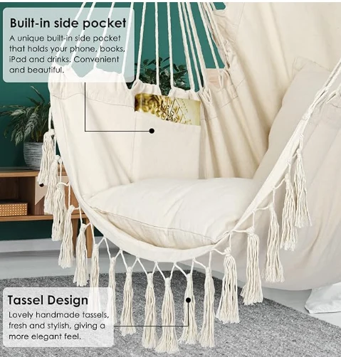Syande hängande fallskärms hängmatta. Hängande den när som helst, var som helst. Hitta bara en gren, stråle eller hängmatta, bra swingstol för utanför eller inuti .zhejiang Jiayu Outdoor Products Co., Ltd. Du kan enkelt meditera eller njuta av landskapet. Det är mycket lämpligt för användning i sovrum, som rumsdekor, balkonger, gårdar och trädgårdar. Om du behöver returnera, ta inte bort taggen från svängstolen